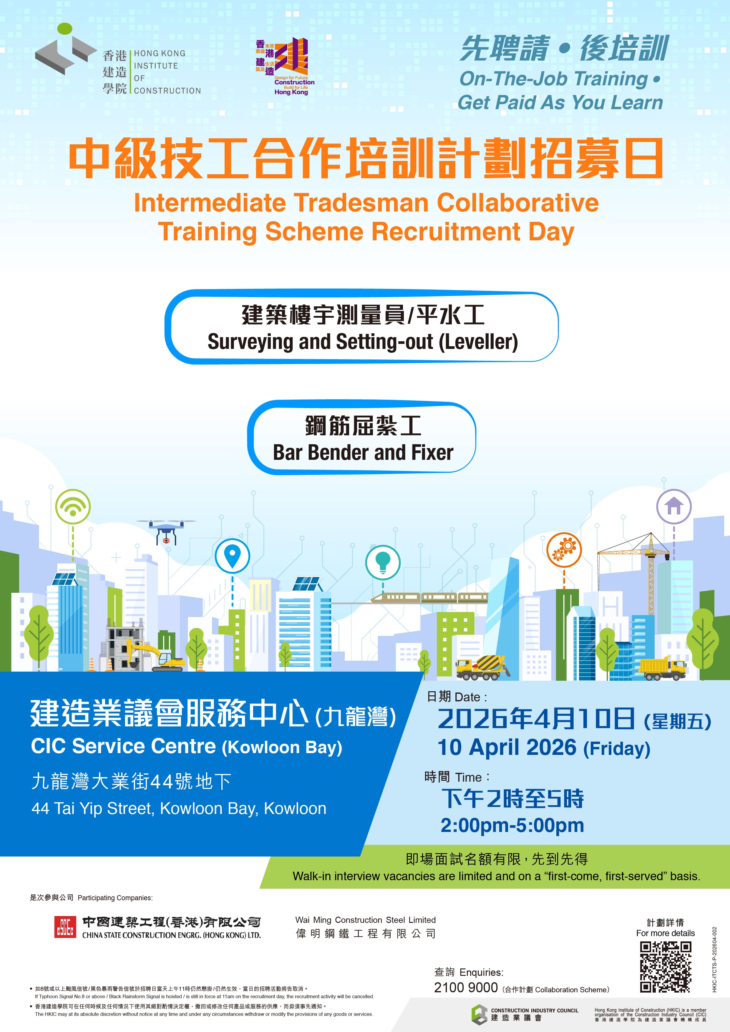 Non-Chinese speaking Hong Kong residents are welcome to join the Recruitment Day and kick off construction professional.
