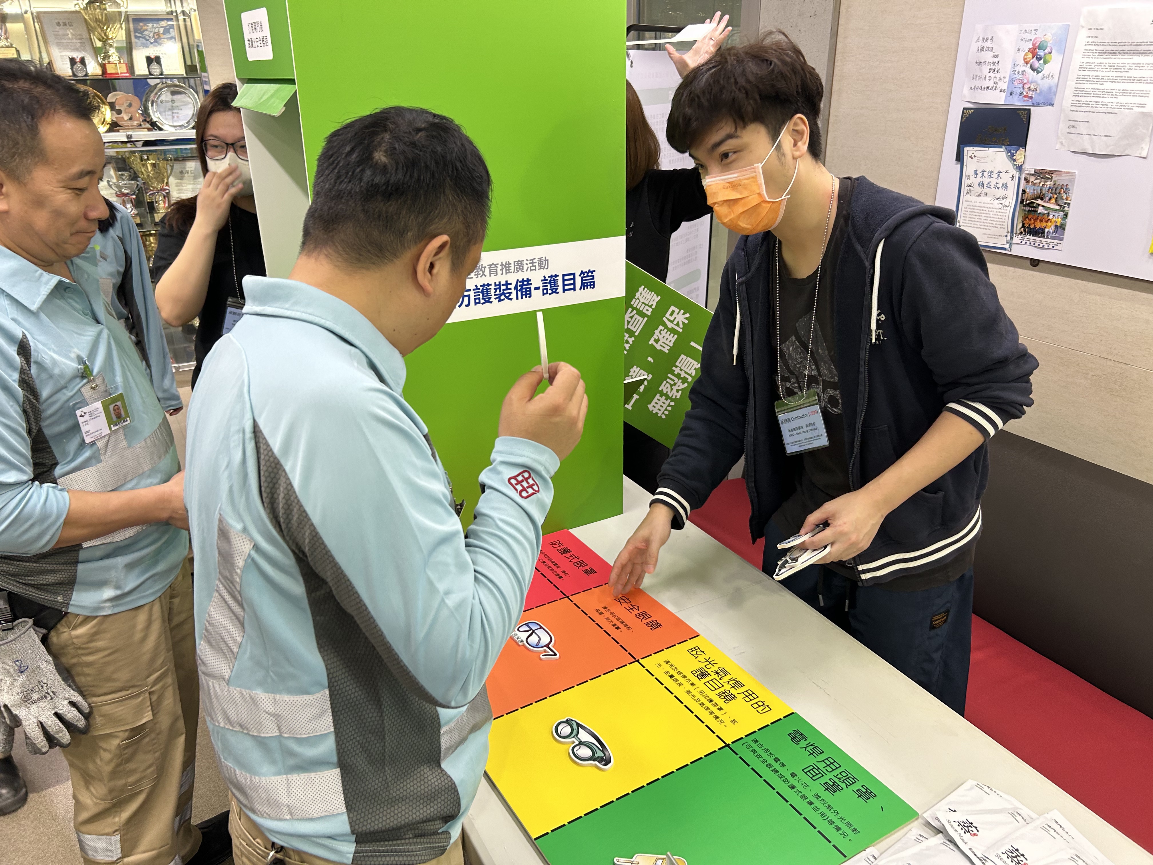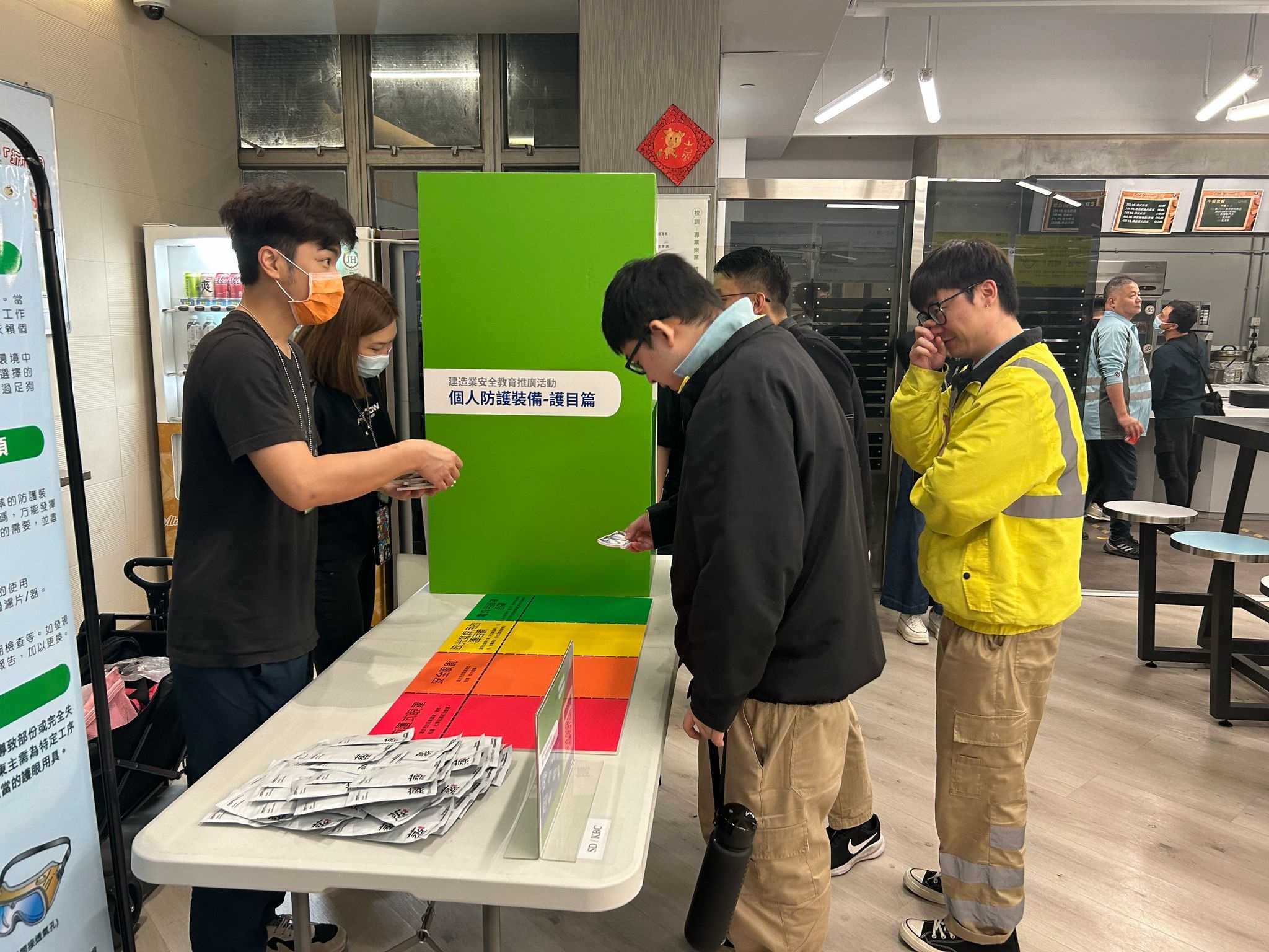 为了培养学生正确的职业安全观念,并营造关注建造业安全的校园文化,学生发展部门于2025年3月10至12日期间在葵涌、上水及九龙湾院校举办了「建造业安全教育推广午间活动—个人防备:护目篇」。透过模拟体验及导师讲解,学生亲身感受视线模糊带来的潜在危险。是次活动不仅加强了学生对眼睛防护的重视,还大大提升了他们在工作中正确使用护眼装备的认识。活动成功吸引了超过150位师生参加,参加者普遍认为活动的形式及主题既有趣又实用,有效提升了他们的安全意识。