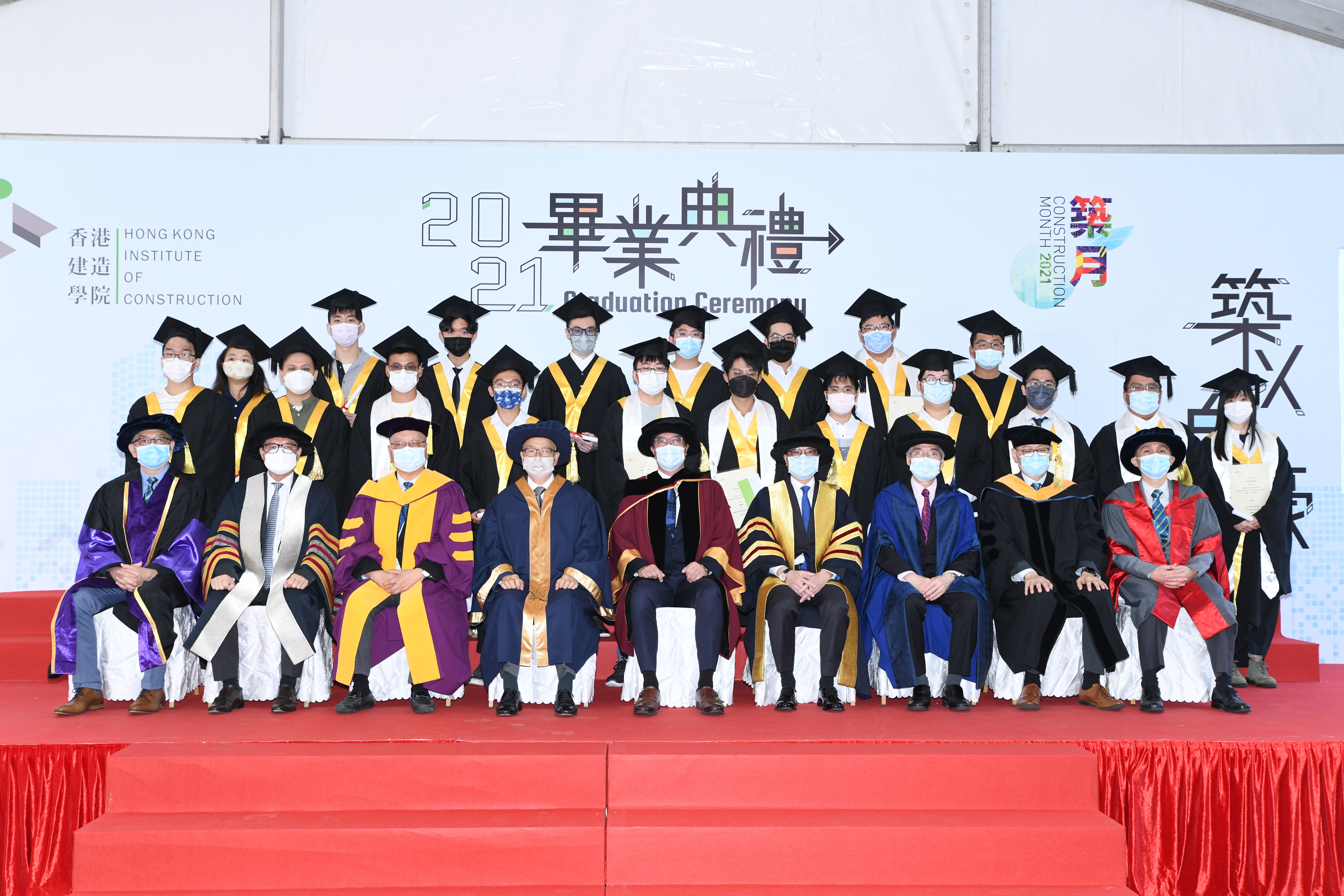 2021年度香港建造學院畢業典禮已於2021年11月26日(星期五)假建造業零碳天地順利舉行。學院邀請了香港特別行政區政府發展局局長黃偉綸先生及香港特別行政區政府發展局常任秘書長(工務)劉俊傑工程師,分別擔任上午及下午典禮環節的主禮嘉賓,而香港建造學院管理委員會主席李焯芬教授,及建造業議會建造業訓練委員會主席林健榮測量師,分別為畢業生致歡迎辭及閉幕辭,以恭賀及表揚畢業生在學習上所付出的努力及恆心,並投身業界一展所長。學院亦於典禮上頒發畢業證書、最佳學生獎及數十項由業界持份者贊助的獎學金,以表揚在工藝上,以至整體個人發展方面表現優秀的畢業生。