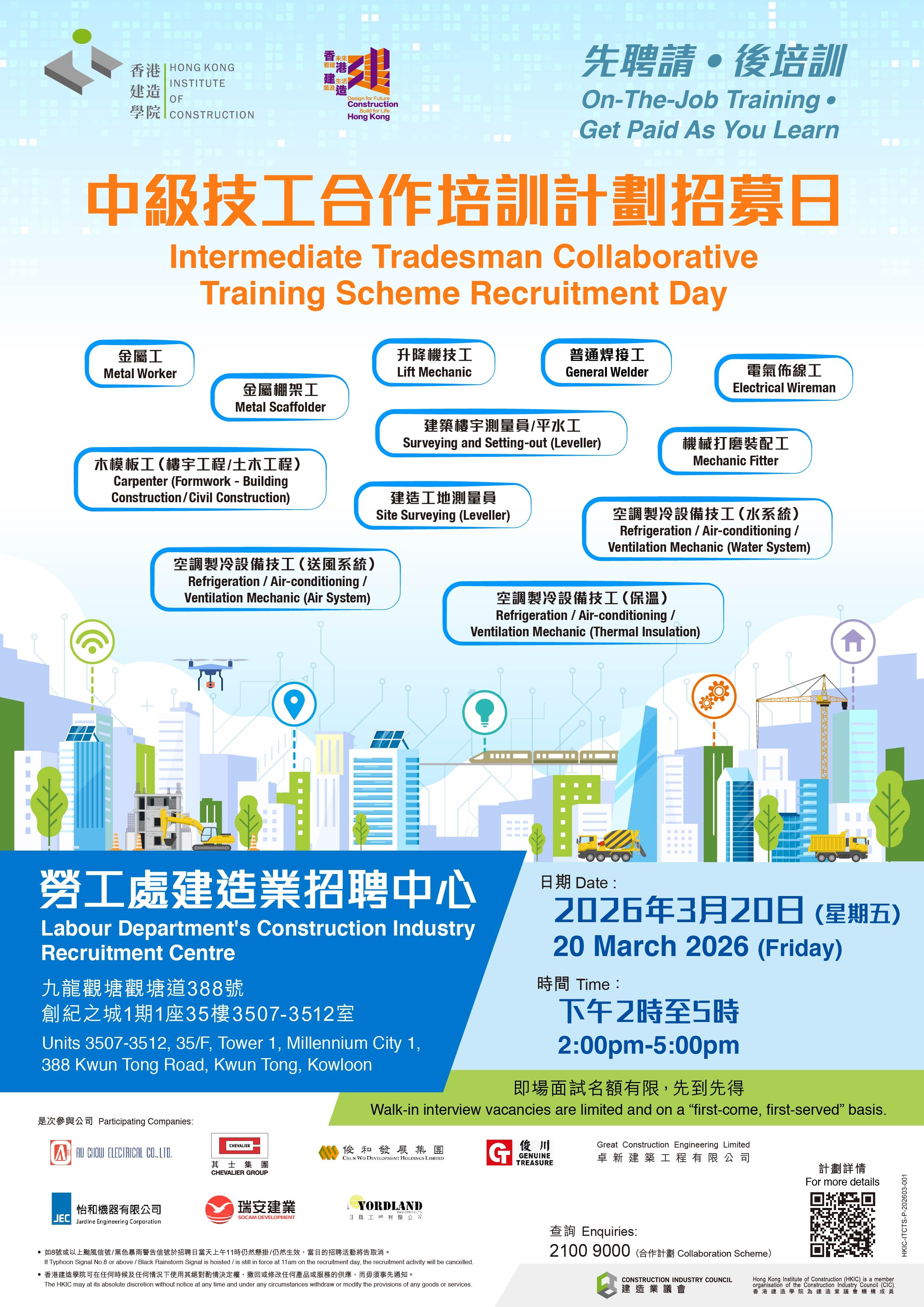 地點:觀塘勞工處建造業招聘中心(九龍觀塘觀塘道388號創紀之城1期1座35樓3507-3512室 )